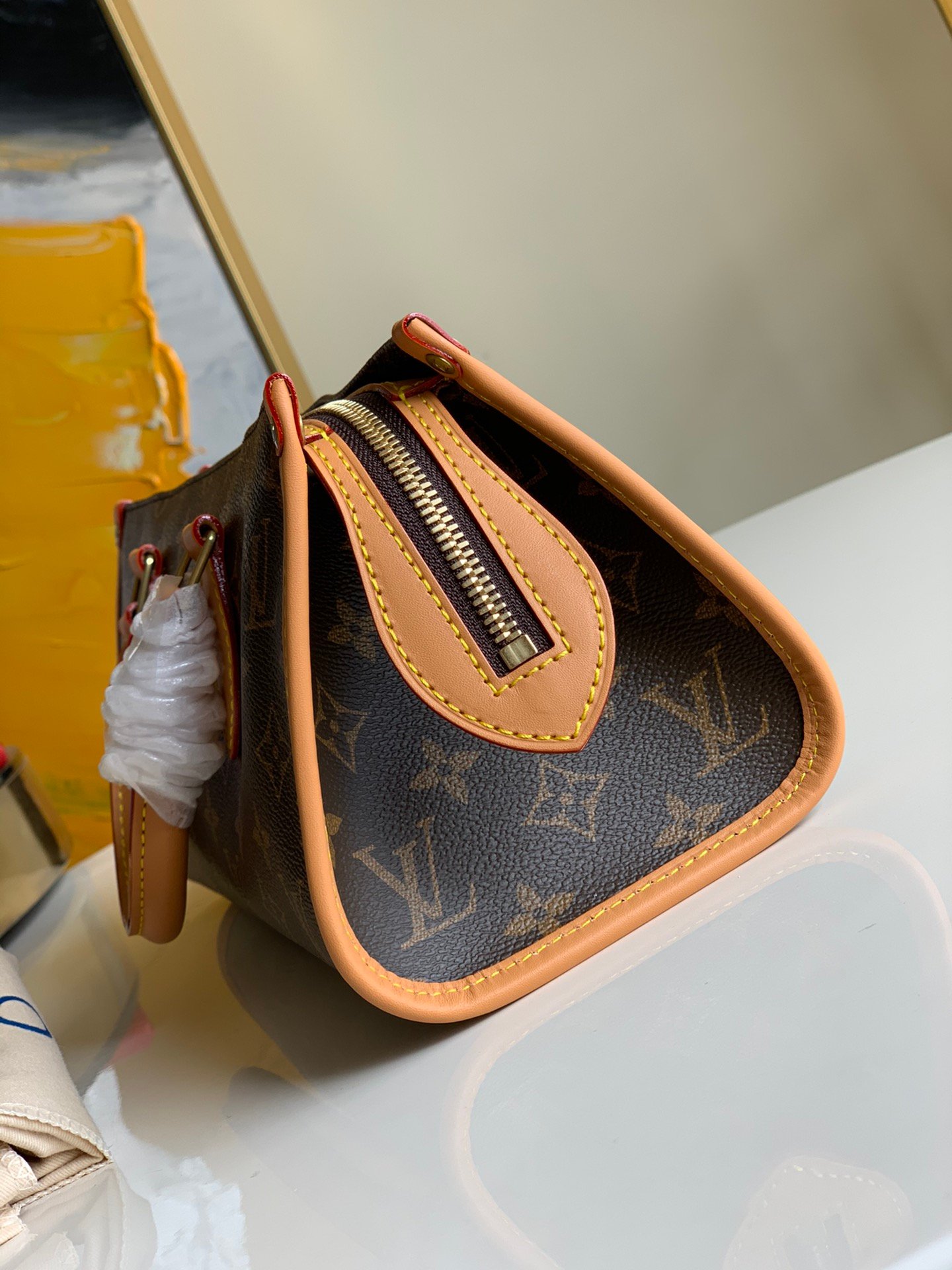 【独家实拍M40009】中古系列金球三角包30×13.5x13cm,王鸥同款金球三角包,Popincourt Haut 小金球,这款包设计感十足,侧面呈三角形,拉锁配有两颗金色小球,俗称俗称小金球包,手提式非常大气透露了优雅气息,也有人叫少奶奶包,造型独特,中古系列里的绝版款式 H.630