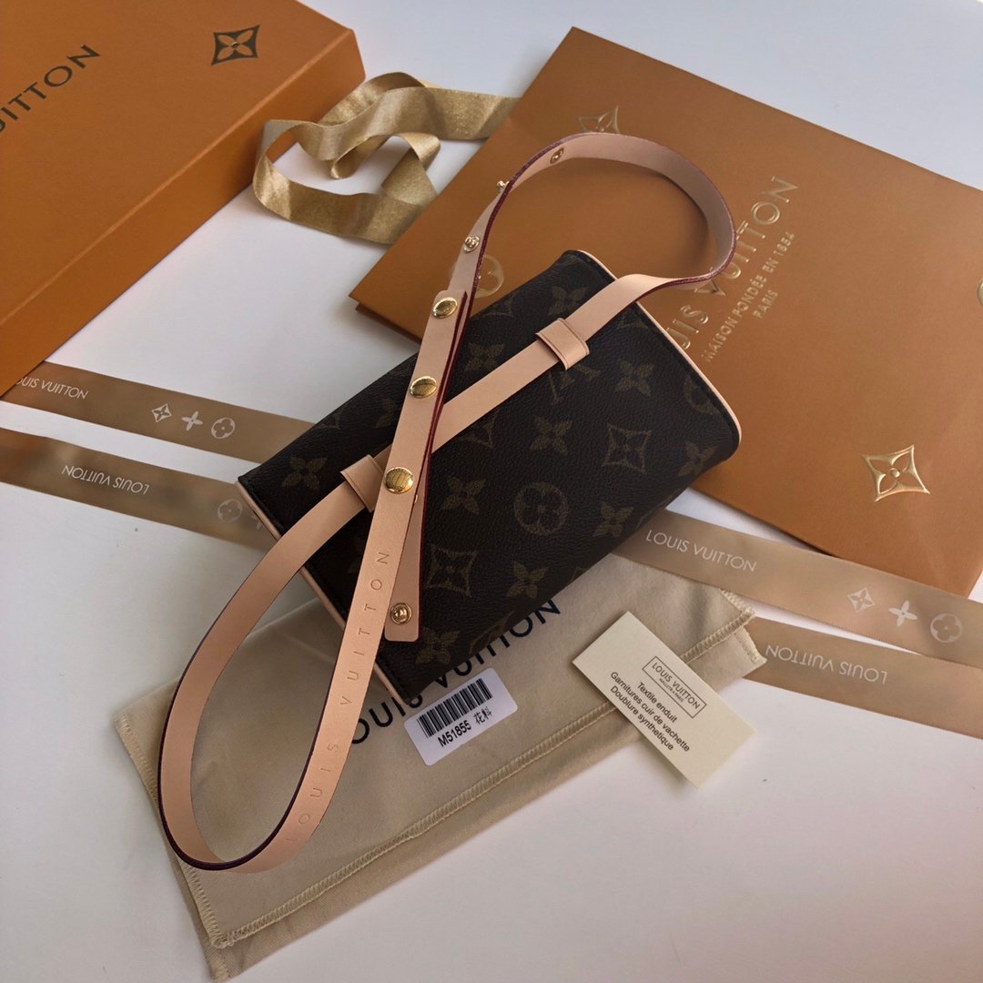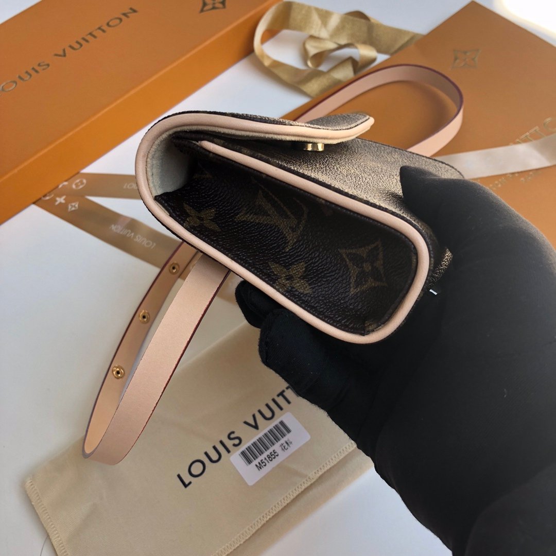 【独家实拍M51855】中古二手开发 对版 超好质量 小号经典柔软Monogram面料搭配变色黄皮饰边 也可以当胸包 斜挎包使用 可调节肩带 随意搭配 怎么搭怎么美 (腰带长度约75-99cm)size17*4.5*10.5 跑量价 2018.280