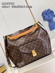 【独家实拍 M40781老花】中古 Monogram 帆布打造的 Métis 以自我态度实践承诺。 Métis 手袋着重线条与轮廓,它既具备了现代手袋所需的多功能性,又继承了路易威登传统的优雅迷人。 两条可脱卸肩带,可以用来手提、手挽或是肩背。尺寸32x36x14cm,