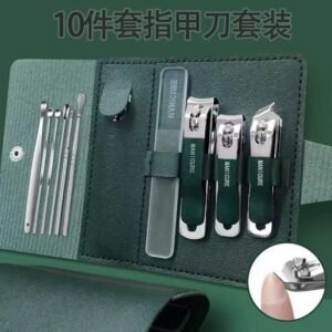 德系指甲剪皮套指甲刀10件套装平口斜口指甲钳修脚剪带挖耳勺套装