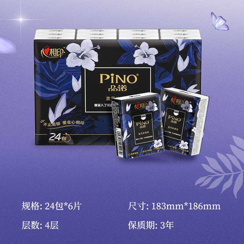 搶先評價 “心相印品诺蓝风铃香氛系列6片48包四层加厚便携装手帕纸”