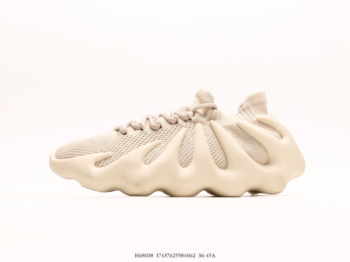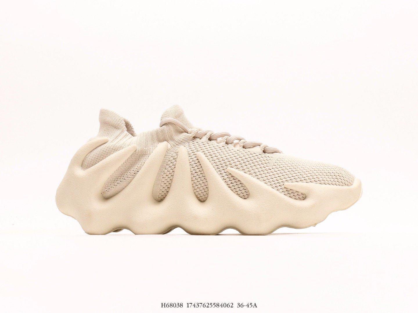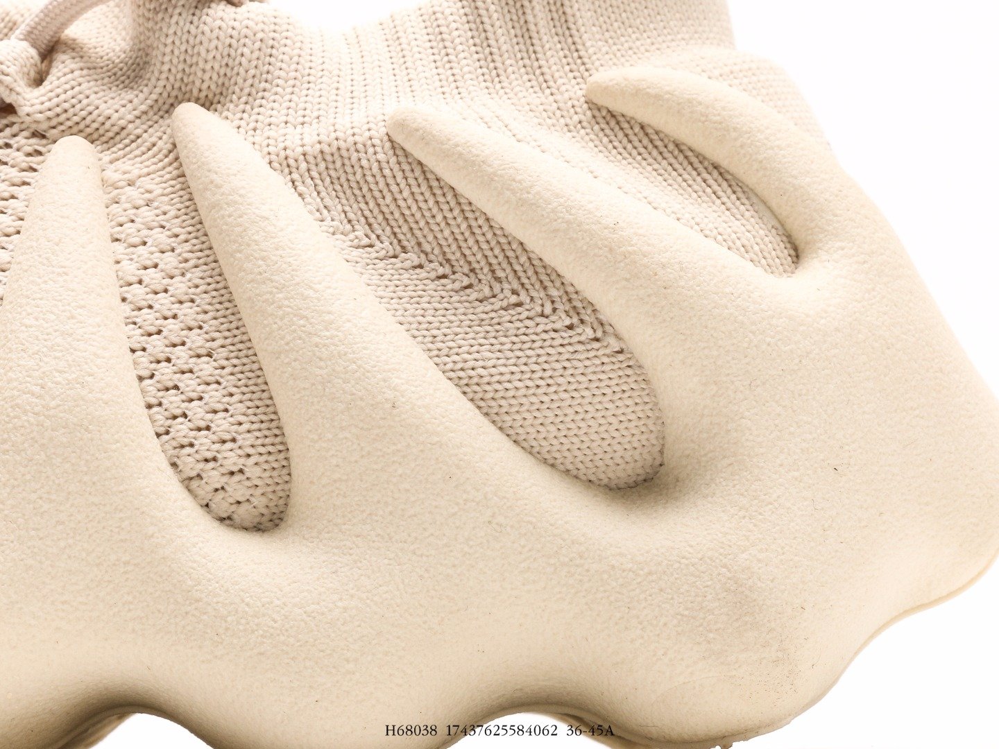阿迪达斯Adidas Yeezy 450 Cloud White 鞋面采用采用编织袜套鞋面搭配夸张的锯齿中底设计,独特的上翻结构十分符合各路球鞋玩家给他的爱称,可谓是目前最为独特的Yeezy鞋款