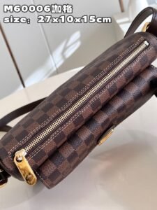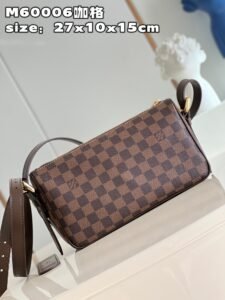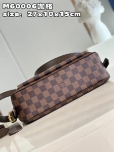 【独家实拍 M60006咖格】中古斜挎 以 Damier帆布制造,内部空间宽敞,设有一个有盖外袋。Damier帆布袋身,米白色微纤维衬里,光面皮革包边 亮金色配件 拉链开合 内贴袋 接裆式外口袋以垂盖配按锁开合 肩背式 肩带设有肩垫,可调整长度 配长短双肩带 单肩 斜挎 可自由切换 尺寸:27*10*15cm(长*宽*高) Z.670