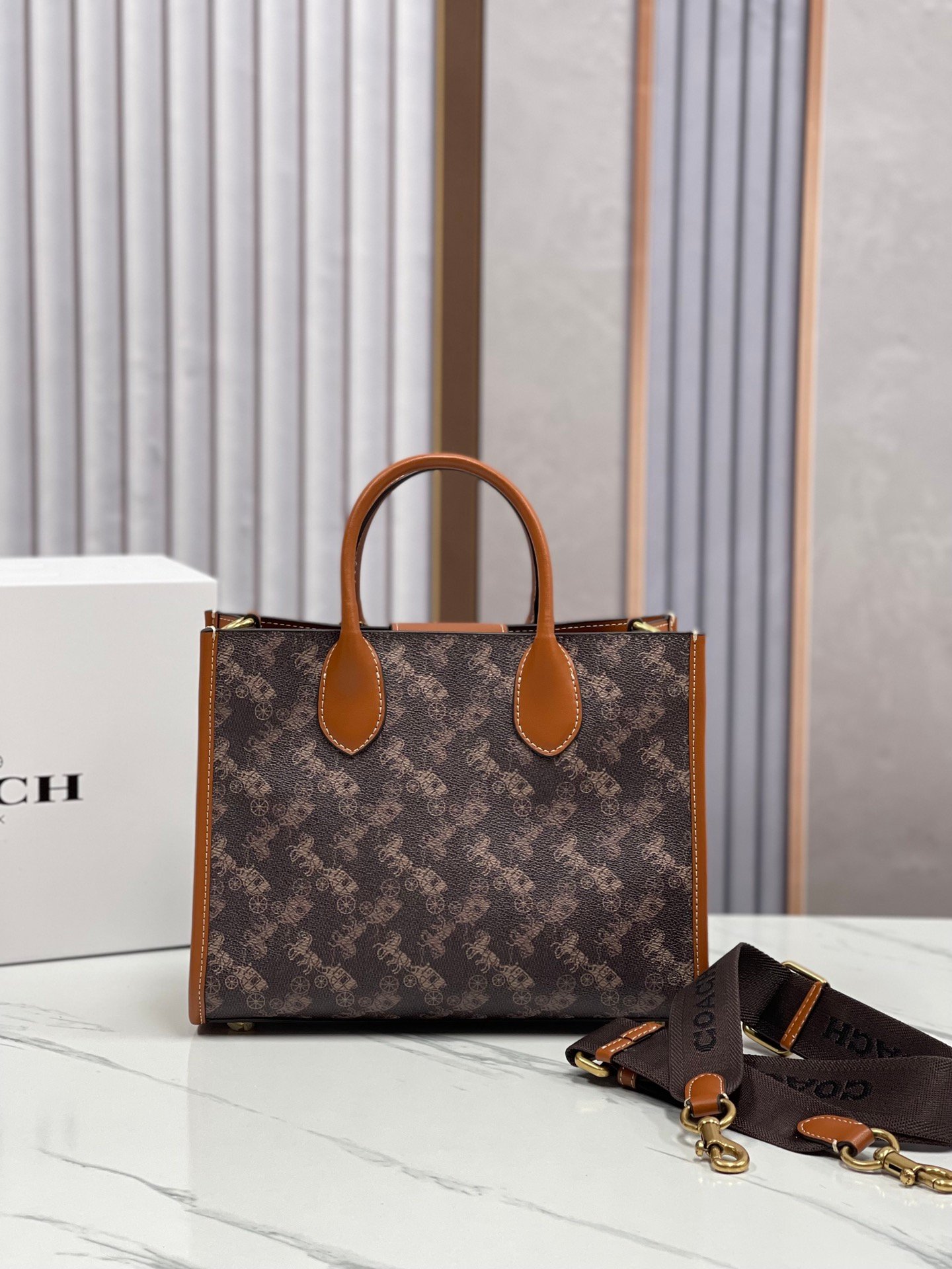 coach/蔻驰新款型号CR680专柜新款ACE马车图案女士托特包
